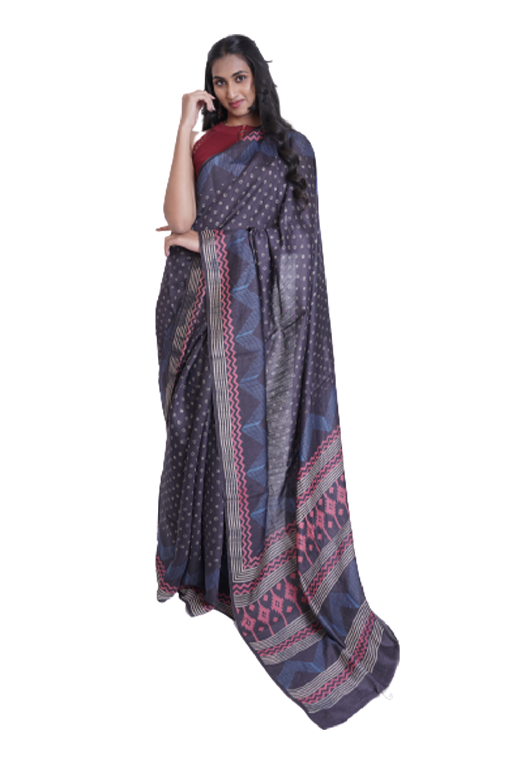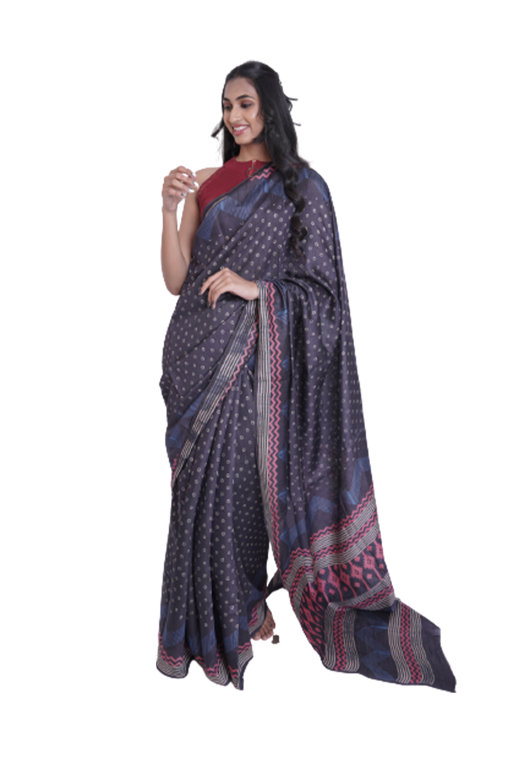 Our silver checks black Blueislandbeach saree is the epitome of sophistication. Made from high-quality fabric, it ensures both comfort and durability. The black and silver combination adds a touch of glamour, making it a perfect choice for special occasions.